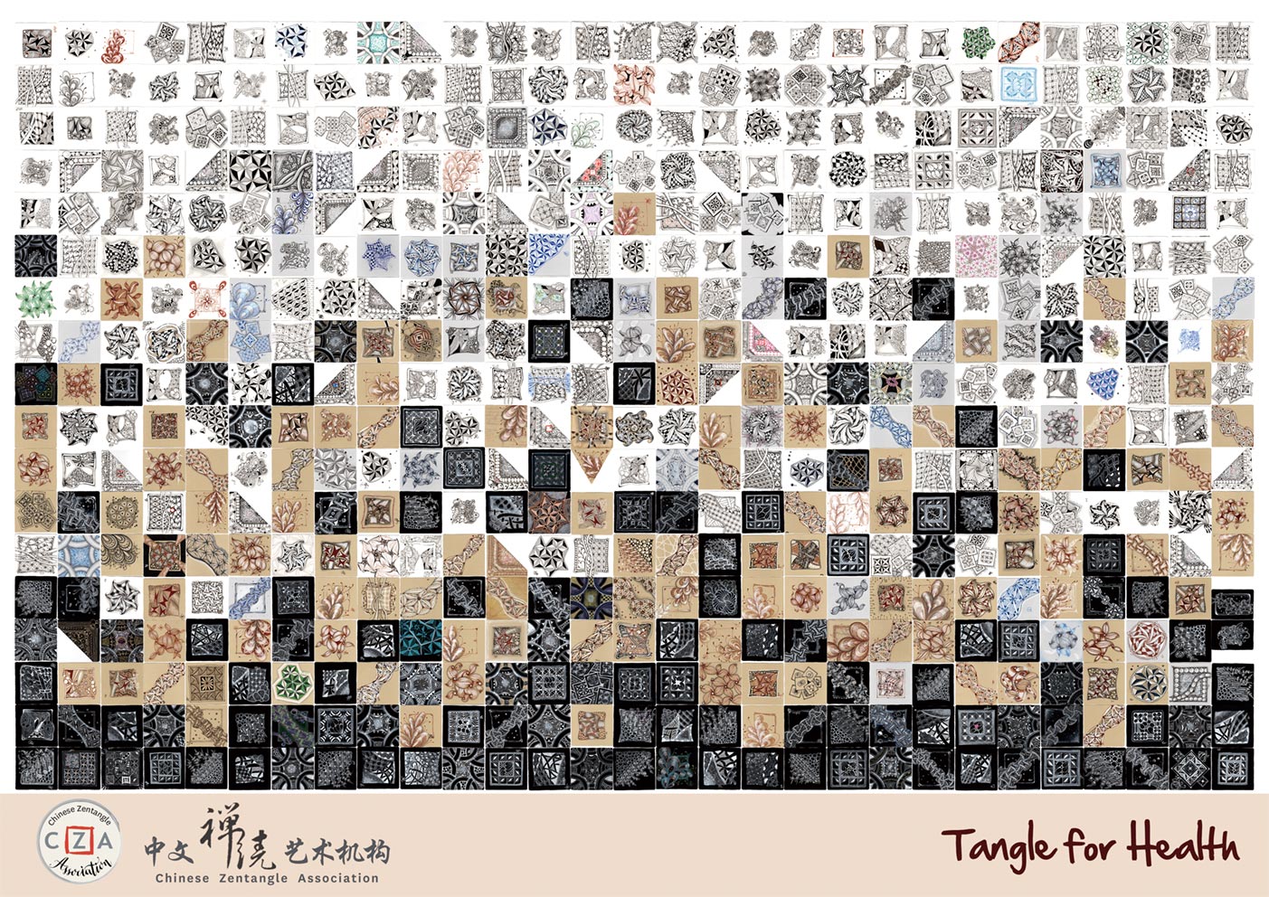 感谢来自于亚洲各地的伙伴们一路相伴、共同参与Tangle For Health活动,并在活动尾声为我们寄来了各自用Zentangle官方纸砖创作的作品,这522张独一无二的创作,铺就在一起组成独一无二的Mosaic作品,也为这次活动带来了最令人感动的瞬间。
