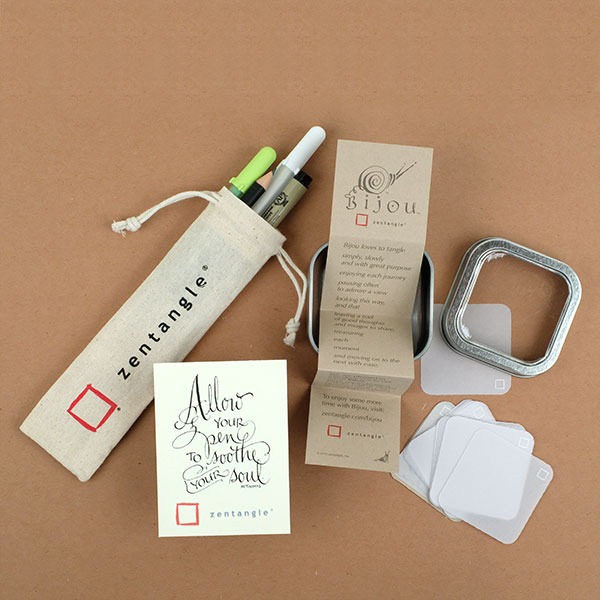 在这个探索过程中,我们将会使用 21 张 Bijou 纸砖和多种笔材。Bijou 建议我们推出特殊的禅绕材料包,来庆祝这个主题。你会选择哪一个呢?